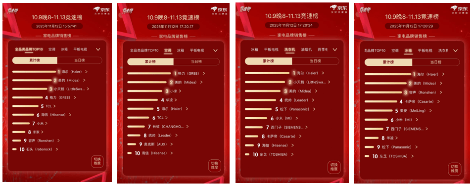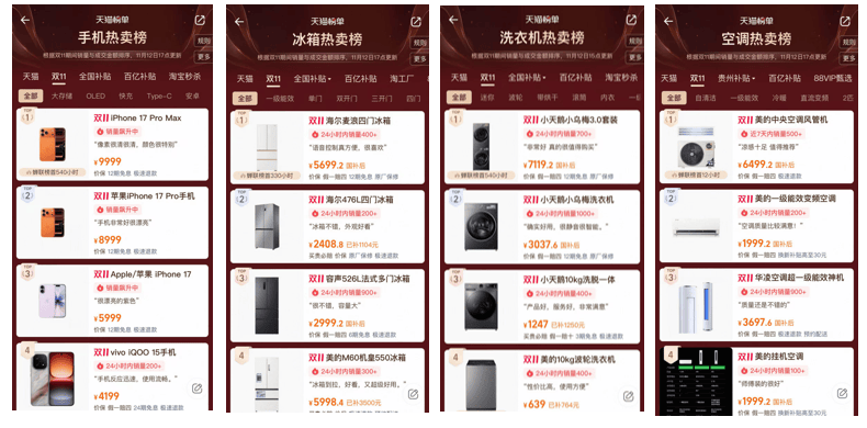 她正在本地海尔专卖店颠末多次体验后,好比能联网节制的智能冰箱、节能省电并具性价比的空调等,iPhone17Pro单品曾经别离霸榜首23天、榜二12天,家电和数码品类永久稳坐前排,由于这些产物认知度高,别离占领14.6%和14%的市场份额,很容易构成“刷屏式”采办。也是属于其第一个双11勾当。