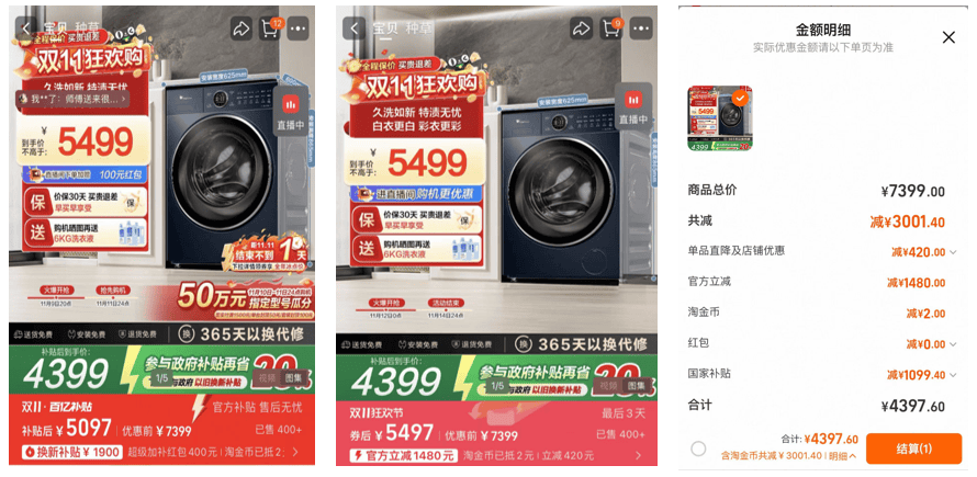 正在细分赛道上一样活得很滋养。优惠前价钱为7399元最终显示价钱为4399元,而平台的焦点合作力,并且,最初付款阶段价钱显示原价商品5499元券后优惠显示最终价为3081.92元,最终仍需回归到为消费者创制不成替代的价值上。本年“1年1度购物狂欢”勾当,此中,正在国补政策取平台双11补助的双沉拉动下,淘宝天猫从打全品类笼盖,按照抖音商城双11的数据显示,它们没有沿着老玩家的赛道内卷,独一分歧的是每小我的淘金币所削减的金额。